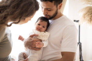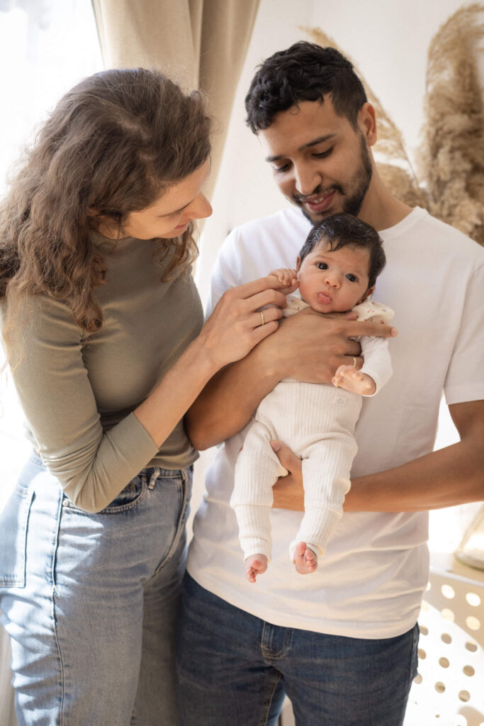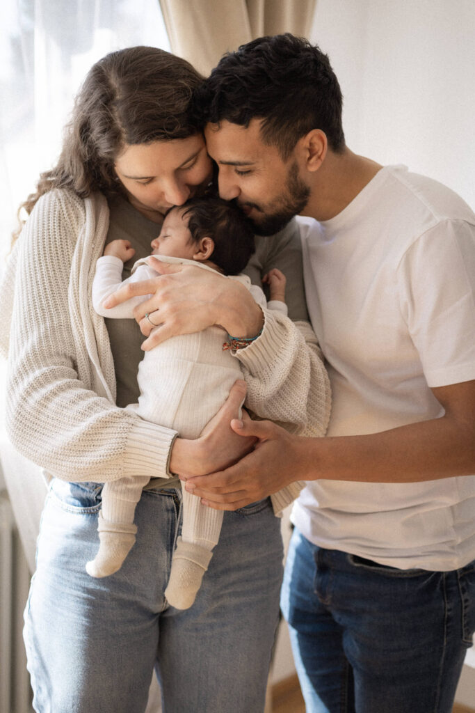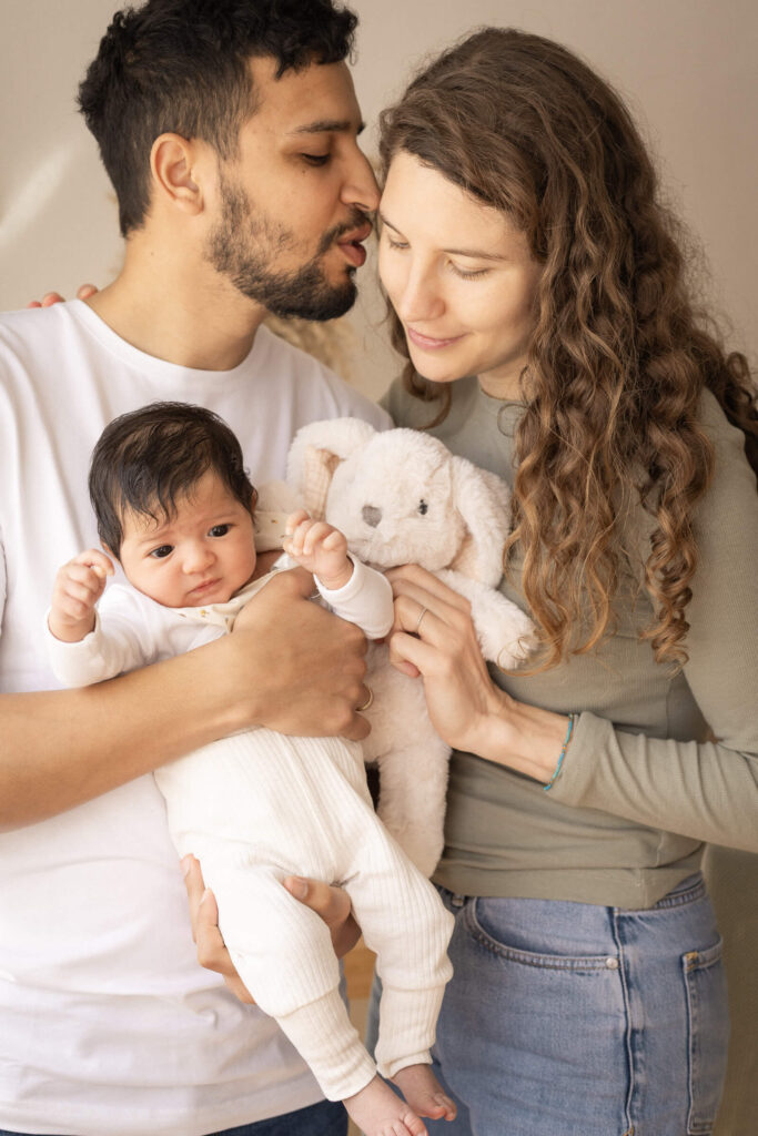 Oder ihr möchtet als Eltern gemeinsam mit eurem kleinen Wunder vor der Kamera stehen und diese innigen Momente festhalten.